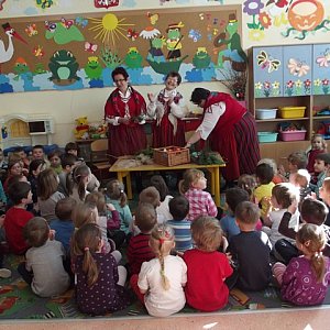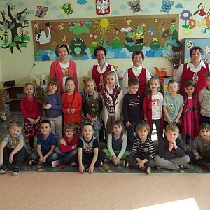 Czas przygotowań do świąt Wielkanocnych jest dobrą okazją do zapoznania dzieci z tradycjami i zwyczajami związanymi z tym okresem.W celu pogłębienia ich wiedzy zaprosiliśmy do przedszkola członków zespołu ludowego ?Chrominianki?. Panie, które nas odwiedziły, wspaniale prezentowały się w ludowych strojach.
