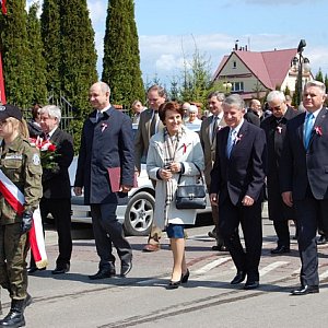 Tam delegacje złożyły kwiaty pod pomnikiem. Podczas uroczystości Starosta Marek Chciałowski podkreślał znaczenie Konstytucji 3 Maja dla Polski.