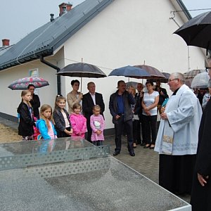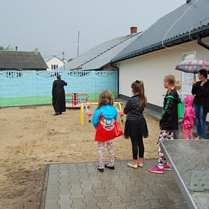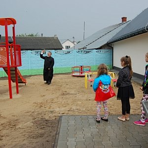 Plac zabaw w Starowoli został poświęcony podwójnie ? przez księży z parafii Parysowie oraz przed deszcz, który tego dnia padał nieustannie. Pogoda nie przeszkodziła temu, by mieszkańcy mogli cieszyć się z nowej inwestycji.