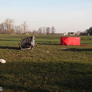 Kierujący fordem jadąc w kierunku Węgrowa na łuku drogi stracił panowanie nad samochodem wjechał na lewe pobocze, a następnie dachował na łące. Kierujący samochodem 57-latek wypadł z auta podczas koziołkowanie forda.  Przypuszczalną przyczyną wypadku była najprawdopodobniej nadmierna szybkość. Policja wyjaśnia okoliczności zdarzenia.