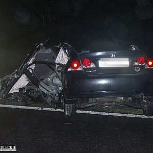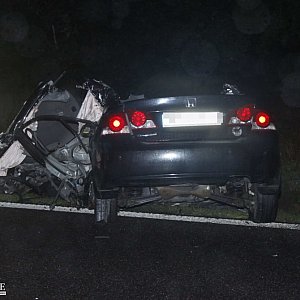 Według wstępnych informacji wynika, że kierujący hondą podczas wyprzedzania zderzył się z dwoma innymi autami. Jedno z nich, o które obtarł się sprawca wypadku pozostało na jezdni, natomiast ford, którym podróżowała 4-osobowa rodzina, po potężnym uderzeniu został całkowicie zniszczony i wpadł do przydrożnego rowu. W karambolu śmierć poniosły dwie osoby: kierowca hondy i kierujący fordem.