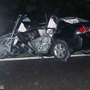 Dwoje małych dzieci i ich matka podróżujące fordem z poważnymi obrażeniami ciała trafili do szpitala. Podczas wypadku padała mżawka, a widoczność była ograniczona. Mimo tego kierujący czarną hondą zlekceważył złe warunki jazdy i wyprzedzał mimo rozciągającej się na drodze mgły. Zabił innego użytkownika drogi i zginął sam.