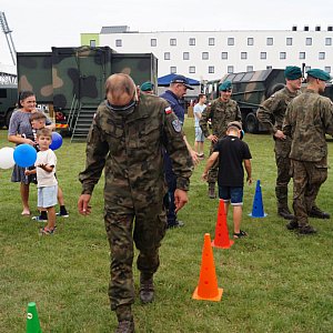 Najmłodsi mogli nie tylko wejść do samochodów, ale także zmierzyć się z torem przeszkód, przymierzyć części umundurowania oraz pomalować twarze. Nie zabrakło także dmuchańców i baniek mydlanych.