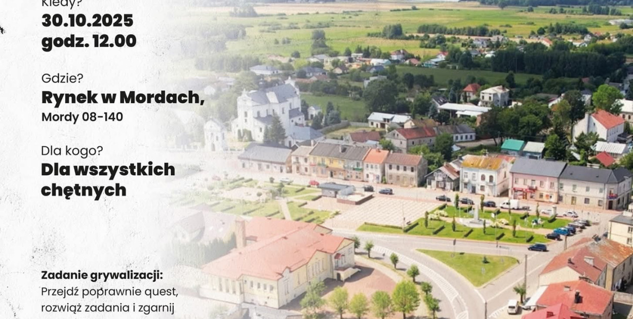 Chcesz poznać legendy, tajemnice i sekrety Mordów? Już w czwartek, 30 października, Rynek w mieście stanie się startem questu terenowego „Mordy – opowieść o mieście i jego tajemnicach”. Uczestnicy będą rozwiązywać zagadki, odkrywać historię miasta i rywalizować o atrakcyjne nagrody.