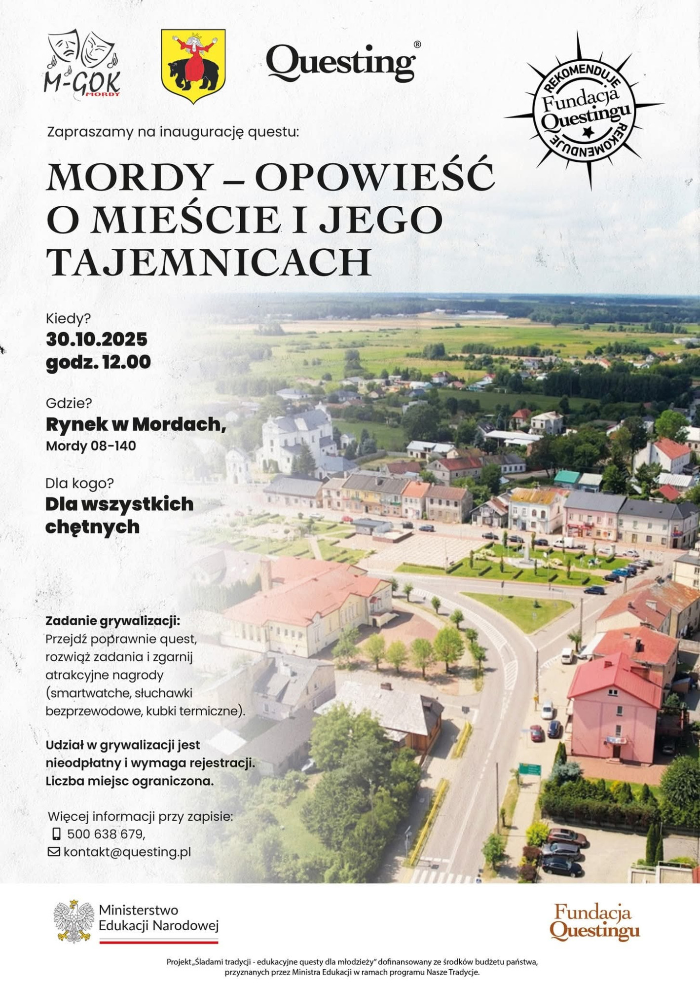 Do wspólnej zabawy zapraszają Questing – wyprawa po skarb oraz Miejsko-Gminny Ośrodek Kultury w Mordach. Projekt „Śladami tradycji – edukacyjne questy dla młodzieży” jest dofinansowany ze środków budżetu państwa przez Ministra Edukacji w ramach programu „Nasze Tradycje”.