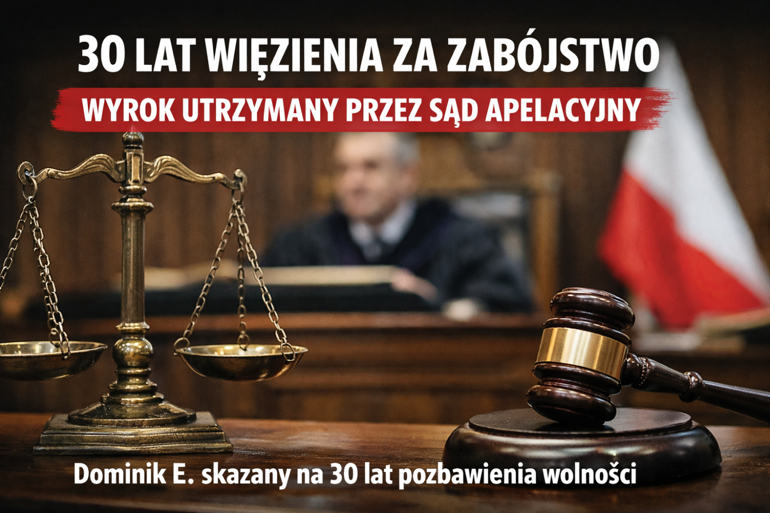 Sąd Apelacyjny w Lublinie utrzymał w mocy wyrok 30 lat pozbawienia wolności dla Dominika E., skazanego za brutalne zabójstwo, do którego doszło w grudniu 2023 roku w Siedlcach. Orzeczenie jest prawomocne.