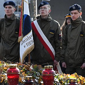 Następnie delegacje reprezentujące władze miasta, wojsko, policję, straż pożarną, służbę więzienną, szkoły oraz organizacje społeczne złożyły kwiaty i zapaliły znicze pod pomnikiem. To były spokojne, ale wymowne gesty – znak pamięci i szacunku.