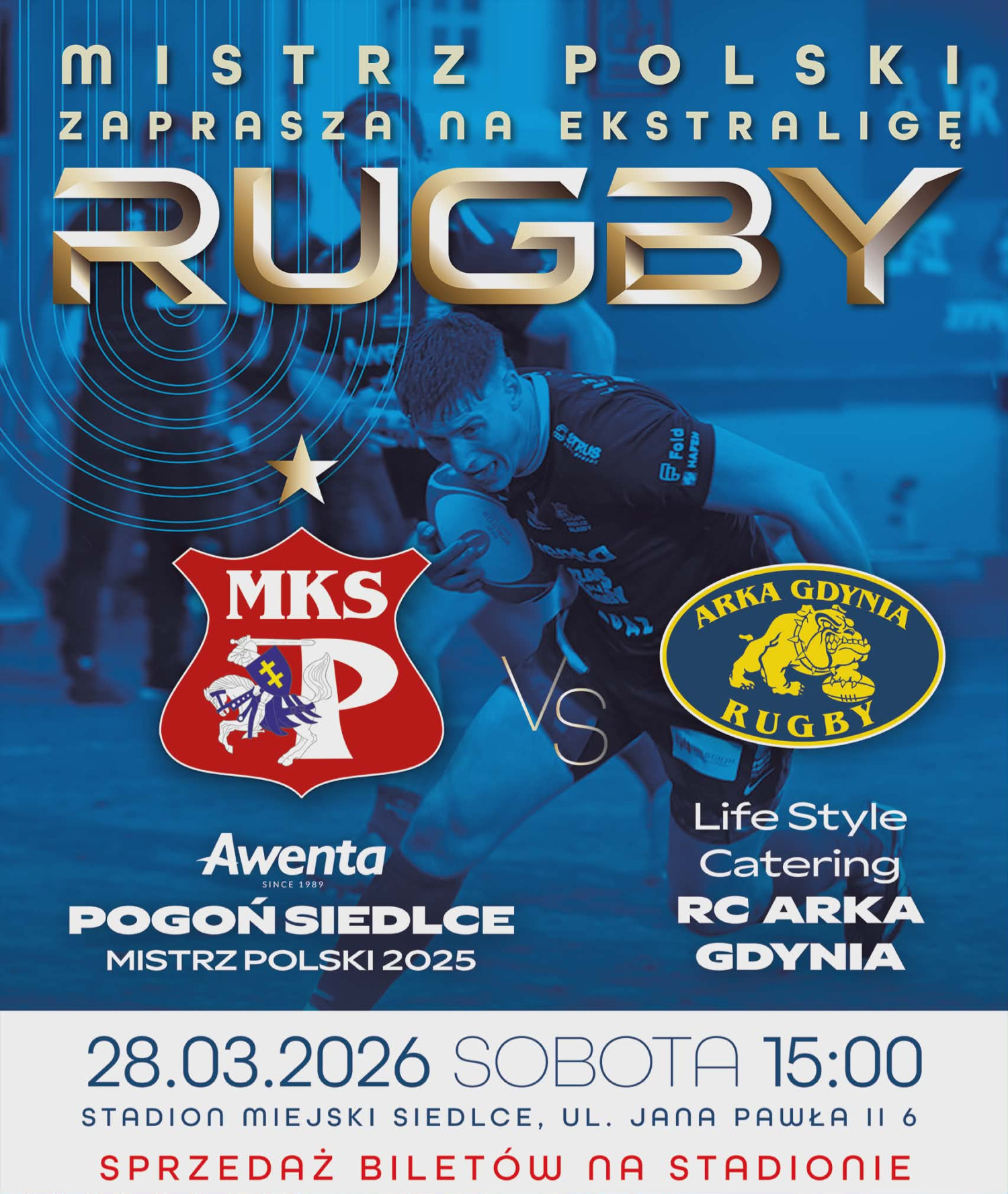 W sobotę, 28 marca o godz. 15.00 na Stadionie Miejskim przy ul. Jana Pawła II 6 w Siedlcach Awenta Pogoń Siedlce zmierzy się z Life Style Catering RC Arką Gdynia w meczu Ekstraligi rugby. Spotkanie zainauguruje rywalizację w Grupie Mistrzowskiej, do której awansowało sześć najlepszych zespołów sezonu.