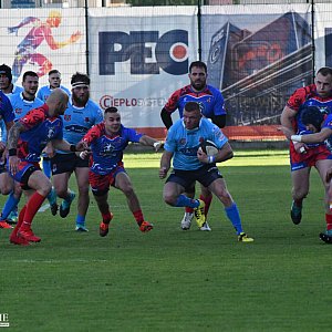 W składzie Budowlanych zaprezentowało się kilku byłych Pogonistów, a zza linii dowodzili nimi Andrzej Kozak i Stanisław Więciorek. Rugbiści z Koziego Grodu przyjechali do Siedlec żądni sprawienia niespodzianki. Pogoniści mieli swoje plany i zaczęli je realizować w 17 minucie. Gospodarze, korzystając z gry w przewadze, otworzyli wynik za sprawą Ołeksandra Szewczenki. Po chwili podwyższył Anton Szaszero (7:0). Budowlani nie przejęli się stratą punktów i doszli do głosu w drugiej części pierwszej połowy. Dwa przyłożenia, karny i podwyższenie sprawiły, że lublinianie schodzili na przerwę przy prowadzeniu 15:7.