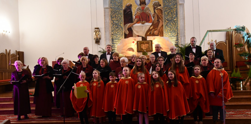 Wydarzenie rozpoczęło się tuż po Eucharystii sprawowanej od godziny 16.00. Zebranych w świątyni powitał proboszcz parafii ks. Andrzej Popławski. Po nim głos zabrał Mariusz Orzełowski: - Cieszymy się, że jak co roku możemy spotkać się na wspólnym kolędowaniu. Nie zapominamy, że jest to rzecz ważna, integrująca. Daje nam nadzieję, wiarę. Pomaga odkryć to, czego w zwykły dzień nie jesteśmy w stanie dostrzec, czyli chociażby otuchę, że trudności dzisiejszych czasów, trudności związane z pandemią, kiedyś miną. Wierzymy, że Ci, którzy obawiają się przyjścia do świątyni wrócą. Niech nasze kolędowanie będzie przesłaniem i przypomnieniem, że kolędy to przepiękne pieśni, a wspólne śpiewanie jest bardzo ważne. Dziękuję, że zostaliście, mam nadzieję, że zaśpiewamy razem.