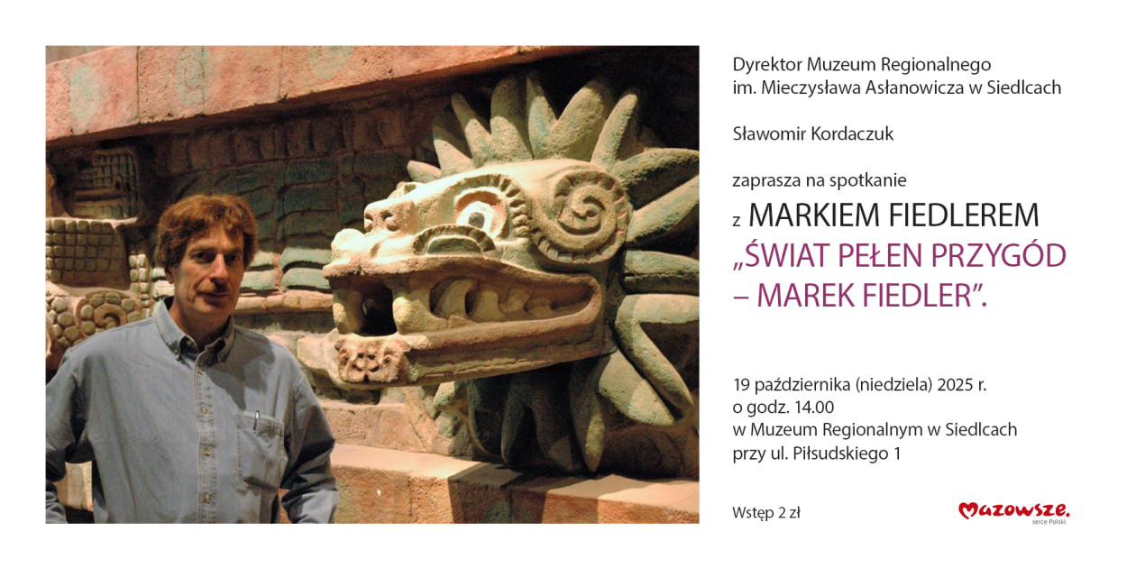 Muzeum Regionalne im. Mieczysława Asłanowicza w Siedlcach zaprasza 19 października na spotkanie autorskie z Markiem Fiedlerem, pisarzem, podróżnikiem, synem legendarnego podróżnika Arkadego Fiedlera. Wydarzenie pt. "Świat pełen przygód - Marek Fiedler" poprowadzi Krzysztof Chaberski.