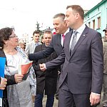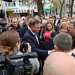 Kandydat na prezydenta został przywitany w Garwolinie bardzo entuzjastycznie, wśród okrzyków ?Andrzej Duda ? nasz prezydent!? czy ?Andrzej Duda ? to się uda!?.