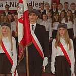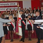 Uroczystość w szkole na ul. Długiej miała podwójny wymiar. 9 listopada odbyły się obchody związane ze Świętem Niepodległości. Patriotyczny jubileusz 97. rocznicy odzyskania przez Polskę niepodległości był również okazją do złożenia ślubowania przez uczniów najmłodszych klas.