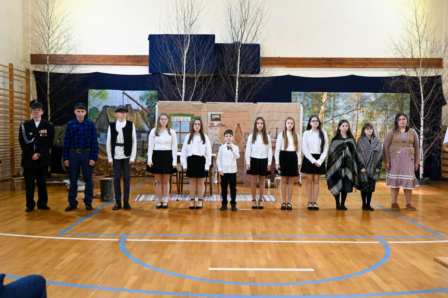 Społeczność szkoły w Czuryłach nie pozostaje obojętna wobec tej historii. Nauczyciele i uczniowie przygotowali wzruszającą akademię opowiadającą o wydarzeniach sprzed ponad 80 lat. Młodzi aktorzy zadbali o detale – realistyczną scenografię, stroje oraz wiarygodną charakteryzację. Ich gra była pełna emocji i autentyczności. Przedstawienie uzupełniły nastrojowe występy wokalne, które podkreśliły powagę i dramatyzm opowiadanej historii.