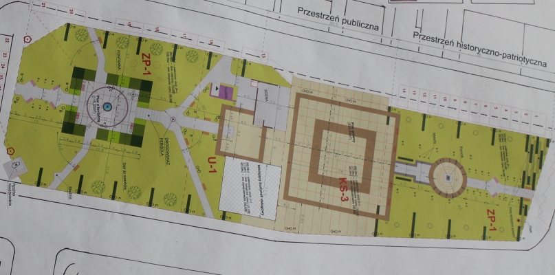 Tam, gdzie obecnie znajdują się przystanki autobusowe i plac z rzeźbą orła przewidziano stworzenie przestrzeni publicznej służącej organizacji koncertów, festynów czy uroczystości patriotycznych. W środku placu ma stanąć pomnik upamiętniający odzyskanie niepodległości przez Polskę oraz sławiący bohaterów roku 1920. Podłoże placu stanowić będą brukowane płyty. Okalać go będą prawdopodobnie dęby kolumnowe. Opodal umiejscowiona zostanie scena wyposażona w zaplecze oraz podnośnik dla osób niepełnosprawnych.