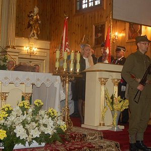 - Potrzebujemy takich chwil jak ta, potrzebujemy miejsc, które będą upamiętniać bohaterów – podkreślał proboszcz wodyńskiej parafii ks. Krzysztof Buczyński podczas mszy świętej poprzedzającej odsłonięcie i poświęcenie pomnika Niezłomnych. Uroczystość odbyła się w niedzielę 3 września. Przybyli na nią przedstawiciele władz państwowych, samorządowych, kombatanci, reprezentanci instytucji, miejscowych szkół oraz mieszkańcy na czele z członkami Towarzystwa Przyjaciół Ziemi Wodyńskiej. To właśnie z inicjatywy osób zrzeszonych w stowarzyszeniu powstał pamiątkowy monument (o szczegółach przedsięwzięcia pisaliśmy na łamach „ŻS” kilka tygodni temu). Na wykonanym z kamienia 3-metrowym obiekcie znajduje granitowa tablica z 13 nazwiskami żołnierzy wyklętych, działających na terenie Wodyń i okolicznych miejscowości. Wszyscy oni walce o wolność w latach 1939-1953 ponieśli najwyższą cenę. Pomnik, który stanął w podworskim parku w Wodyniach to wyraz uznania dla ich niezłomnej postawy, uporu i patriotyzmu oraz świadectwo dla młodych pokoleń. Oficjalnego odsłonięcia pamiątkowego obiektu dokonali: Katarzyna Markiewicz – pomysłodawczyni budowy pomnika, Wojciech Klepacki – wójt gminy Wodynie, były prezes ŚZŻ AK Koło Wodynie Stanisław Śledański oraz obecny - Zenon Kublik.