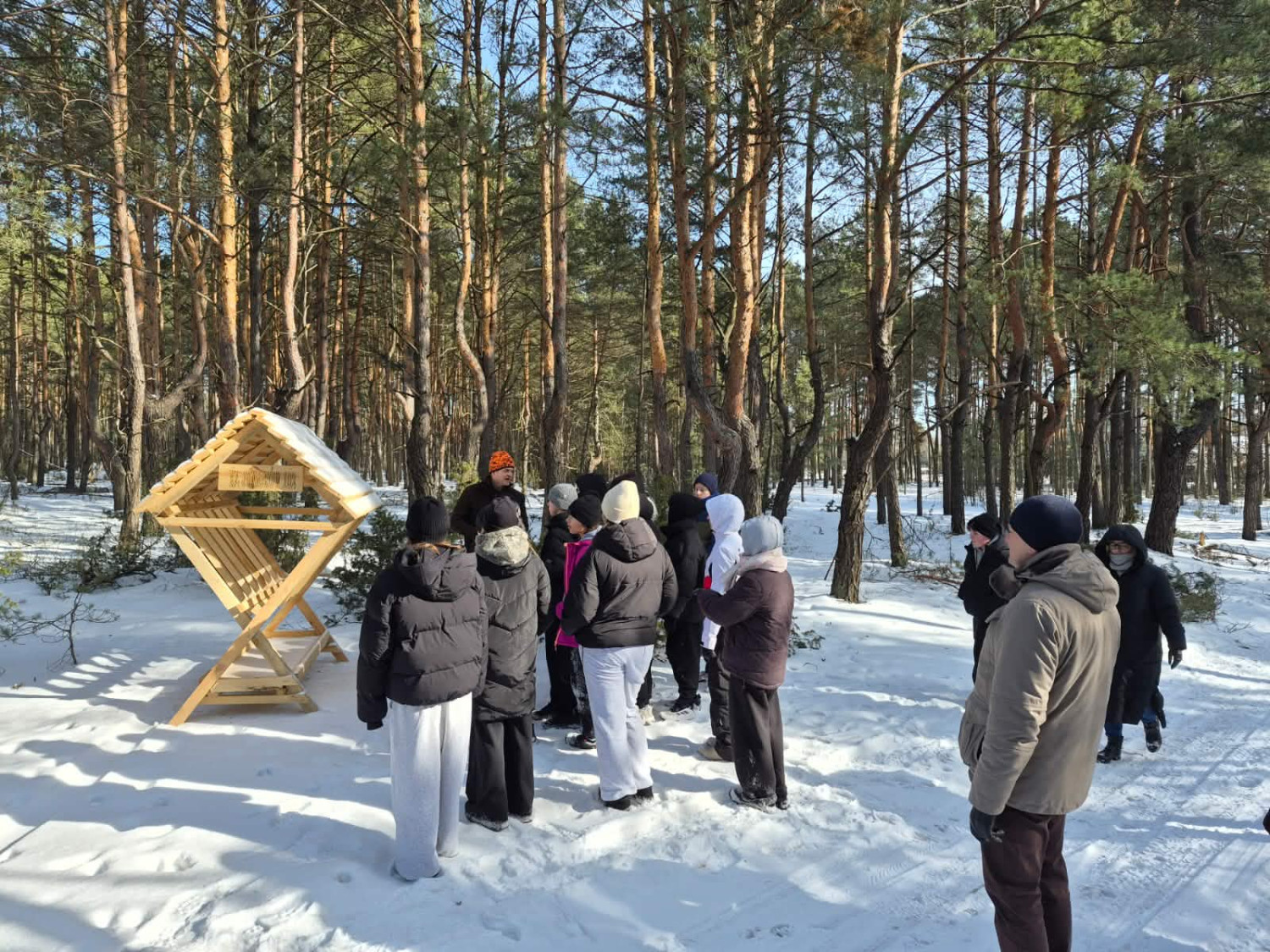 Istotnym elementem spotkania była część poświęcona dokarmianiu zwierzyny w okresie zimowym. Organizatorzy wyjaśnili, dlaczego wsparcie zwierząt w trudnych warunkach pogodowych jest tak ważne oraz jak prawidłowo prowadzi się takie działania. Po krótkim wprowadzeniu teoretycznym uczestnicy udali się w teren, gdzie przy paśnikach rozłożyli siano i zboże.