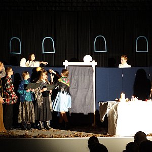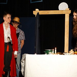 Uczniowie II klasy Katolickiego Gimnazjum w Siedlcach mają już za sobą swój teatralny debiut. 9 stycznia na Scenie Teatralnej Miejsko-Gminnego Ośrodka Kultury w Mordach zagrali w premierowym spektaklu ?Dziady ? część II? na podstawie dramatu Adama Mickiewicza.Pomysł przygotowania przedstawienia zrodził się na lekcji języka polskiego. ? Padło spontaniczne pytanie: ?Czy chcemy przygotować Dziady w wersji teatralnej??. Odpowiedź klasy była pozytywna. Reżyserią całości zajął się Jakub Mendza, jeden z uczniów ? wyjaśnia Dorota Mazur, opiekun grupy, polonistka w Katolickim Gimnazjum w Siedlcach. Uczniowie nie uwspółcześnili scenografii, postanowili oddać realia nakreślone przez Mickiewicza w didaskaliach.