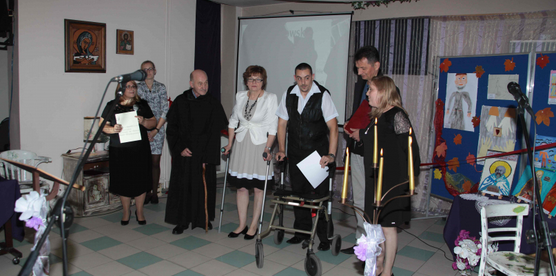 Następnie odbyła się uroczystość nadania imienia Anny Piluś wolontariatowi działającemu przy DPS. Jak pisał Jan Paweł II: „Wolontariusz, gdy bezinteresownie może dać innym coś z siebie, doświadcza radości, która przewyższa to, czego dokonał”. I taką osobą była Anna Piluś. Już jako studentka przychodziła do „Domu nad Stawami” najpierw jako wolontariuszka, potem terapeutka. Zarażała optymizmem i uśmiechem. Sprawdzała się w tej pracy jak mało kto. Organizowała dla swoich podopiecznych czas, nie było dla niej rzeczy nie do zrobienia. Ania tańczyła, śpiewała, zachęcała do ruchu, do uśmiechu, zachęcała do życia tych, którzy często nie mieli już nadziei. Była osobą zjawiskową, zawsze radosna, pełna entuzjazmu, szczerego uśmiechu i miłości – dzieliła się tym i to udzielało się innym. Miała w sobie mnóstwo miłości i dobra, zarażała swoją pasją i witalnością. Zginęła w wypadku samochodowym w drodze z pracy w ubiegłym roku. Wolontariusze są dumni, że mają tak wspaniałego człowieka za patrona w swojej działalności. Ten niezwykły wieczór uświetnił koncert pani Patrycji Łukaszuk której akompaniował Wojciech Ciekot.