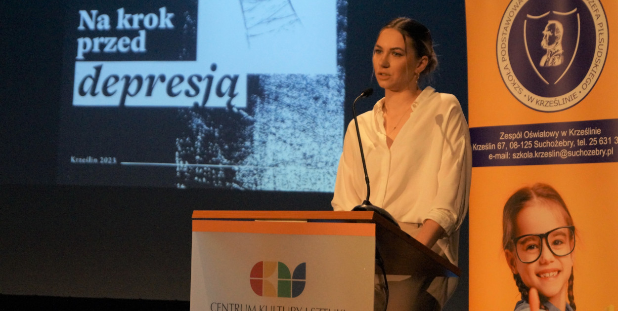 Kluczową częścią spotkania były wypowiedzi prelegentów. Pierwszym z nich była Julia Pasieczna, która jeszcze do niedawna zmagała się z depresją. Kobieta opowiedziała o pierwszych objawach choroby i o tym, jak diametralnie zmieniło się jej życie. Z towarzyskiej i pewnej siebie osoby, stała się w pewnej chwili zamkniętą w sobie dziewczyną, która nie chce wychodzić z domu, a sen traktuje jako ucieczkę od złych myśli. Jak sama mówi, nie poradziłaby sobie wtedy bez pomocy specjalistów, którzy poświęcali jej swój czas nawet w okresie pandemii, kiedy ten kontakt bezpośredni był utrudniony. Oprócz tego mogła liczyć na wsparcie chłopaka i cioci, którzy byli przy niej w tych trudnych chwilach. Z historii Julii wynika, że depresja mogła być niespodziewaną odpowiedzią na nieprzepracowane przez lata emocje, które kumulowały się w niej przez lata. [- Te emocje można powiedzieć, że dosięgnęły mnie w najmniej oczekiwanym momencie. Wtedy, gdy zdiagnozowano u mnie depresję, w moim życiu nie wydarzyło się nic złego. Byłam szczęśliwa, pracowałam, miałam chłopaka i zdrowie, na które do tej pory nie mogłam narzekać. W momencie, kiedy człowiek zaczyna chorować, nie musi być na to konkretnego powodu. To może stać się z dnia na dzień, zupełnie niespodziewanie. ] Historia dziewczyny jest świetnym przykładem do tego, że warto walczyć o siebie i o swoje zdrowie, bo tą niezwykle trudną chorobę można przezwyciężyć. Potrzebne jest tylko odpowiednie wsparcie specjalistów i bliskich osób.