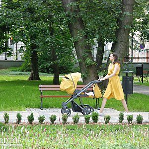 Siedlczanie spacerując po parku mieli okazję natknąć się również na szczudlarzy w efektownych strojach i maskach oraz zrobić wspólne zdjęcie z postaciami z XVIII wieku lub z samą księżną Ogińską, która dostojnie przyozdabiała jedną z ławek.