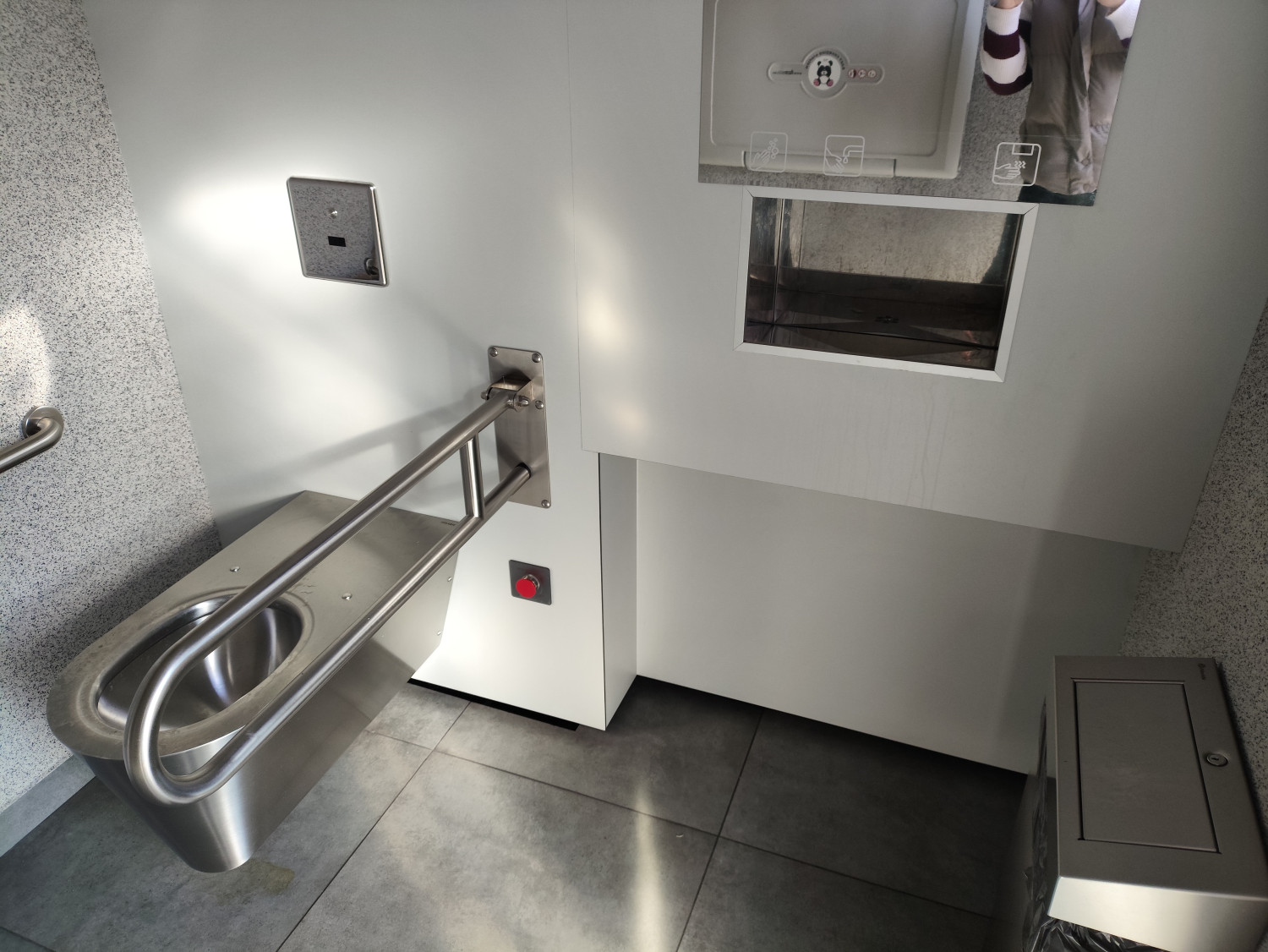 Ciekawostką jest 15-minutowy limit korzystania – przypomina o nim mały znaczek z zegarem na drzwiach. A co po tym czasie? Drzwi toalety po prostu same się otworzą, więc lepiej nie nastawiać się na dłuższą „posiadówkę” przy scrollowaniu social mediów czy czytaniu gazety.