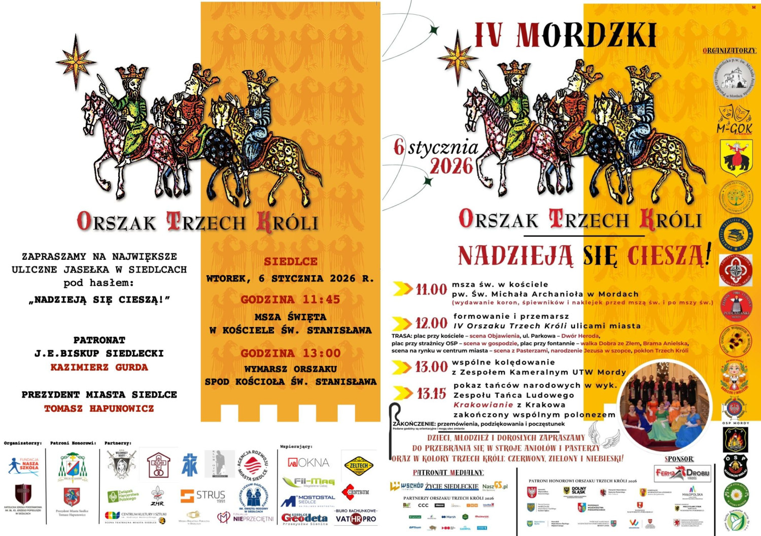 6 stycznia wydarzenie po 7-letniej przerwie wróci do Mordów. – Orszak tworzą przede wszystkim mieszkańcy: przedstawiciele wszystkich pokoleń i różnych profesji. Ta inicjatywa bardzo jednoczy lokalną społeczność, uczy tolerancji i szacunku oraz otwiera na dobro. Przejście Orszaku Trzech Króli jest ogromną atrakcją dla mieszkańców i osób goszczących w naszej gminie. Niech Orszak Trzech Króli stanie się dla nas wszystkich czasem refleksji, radości oraz umocnienia więzi wspólnotowych, a także pięknym początkiem nowego roku w duchu tradycji i wzajemnej życzliwości – mówi burmistrz Łukasz A. Wawryniuk.