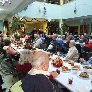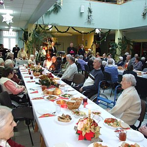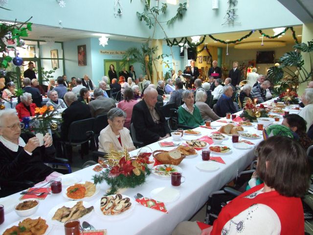 24 grudnia w siedleckim Domu Pomocy Społecznej odbyła się uroczysta Wigilia mieszkańców Domu Nad Stawami. Uczestniczył w niej ks. bp. Zbigniew Kiernikowski. Obecni byli również Adam Kowalczuk ? dyrektor DPS, Marzena Lipińska ? wicedyrektor, ks. Władysław Łuczuk ? kapelan DPS, terapeuci ?Dominik Doszko i Anna Piluś, a także pracownicy socjalni ? Anna Pawlik i Edyta Kamieńska.Wigilia rozpoczęła się modlitwy, którą poprowadził ks. bp. Kiernikowski. Ewangelię przeczytał Krzysztof Świątek. Dyrektor Adam Kowalczuk życzył wszystkim obecnym, aby w Roku Pańskim 2014 wszyscy byli zdrowi, każdemu dopisywała pomyślność i aby każdemu mieszkańcowi w Domu Nad Stawami żyło się dobrze.