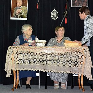 W pierwszej części seniorzy obejrzeli 2 przedstawienia: ?Pożegnanie powstańców? oraz spektakl obrzędowy ?Oblegacje?. Na scenie w specjalnie przygotowanym repertuarze zaprezentowały się także zespoły seniorów działające w M-GOK-u. Oprócz zespołu Ludowego ?Podlasianki? zaśpiewały Zespół Wokalny z Wyczółek oraz ZL ?Krzymoszowianki?. Ponadto w kilkuminutowym programie poetyckim wystąpiła Barbara Chromiec z Koła Seniora w Mordach. Duże zaciekawienie wzbudził wykład dr. Tadeusza Boruty na temat 1914 roku i Józefa Piłsudskiego. ? Jestem pod ogromnym wrażeniem działalności seniorów w naszej gminie, którzy nie tylko piszą teksty piosenek i śpiewają, ale też grają w przedstawieniach ? powiedział Mirosław Łukowski.