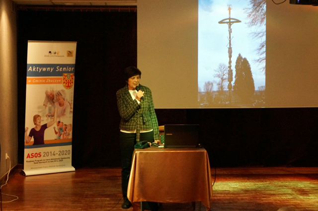 Jako znawca wielu dziedzin w kulturze ludowej i nieprofesjonalnej oraz tradycji, zwyczajów i obrzędów ludowych, przedstawiła ciekawy wykład pt: ?Kapliczki i krzyże przydrożne ? znaki wiary i pamięci?. Spotkanie zorganizowano dla UTW Zbuczyn w ramach projektu ?Aktywny Senior w Gminie Zbuczyn? realizowanego w ramach Rządowego Programu na rzecz Aktywności Społecznej Osób Starszych na lata 2014-2020.