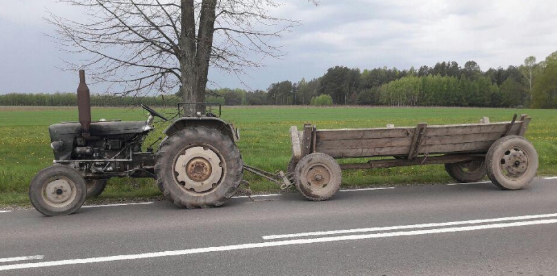 W sobotę, 6 maja, na trasie Suchodół- Kupientyn policjanci sokołowskiej drogówki zauważyli mężczyznę kierującego ciągnikiem rolniczym ciągnącym wóz, który jechał od prawej krawędzi jezdni do środka, po czym znów zjeżdżał do prawej krawędzi jezdni. Po zatrzymaniu do kontroli drogowej policjanci wyczuli od kierowcy woń alkoholu. Po zbadaniu przez mundurowych okazało się, że mężczyzna miał prawie dwa promile alkoholu w wydychanym powietrzu.