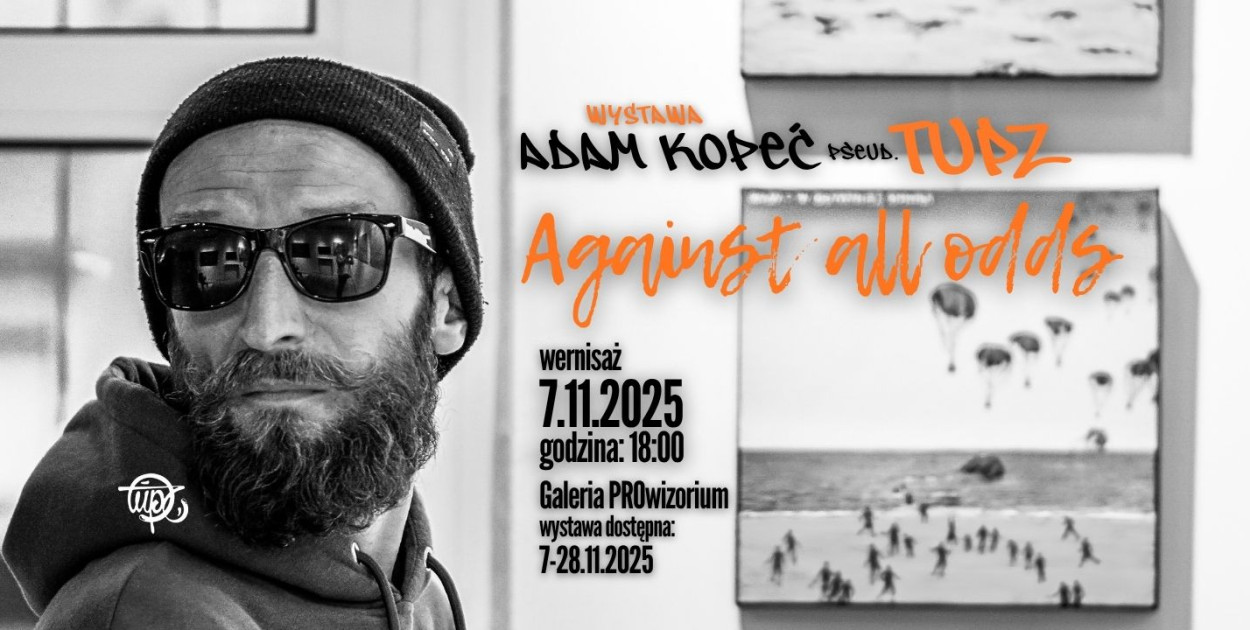 „Against all odds” to szeroki przegląd twórczości Adama Kopcia – od pierwszych, spontanicznych realizacji po dojrzałe dzieła, w których artysta w pełni rozwinął swój unikalny styl. Wśród eksponowanych prac znajdą się zarówno znane już łukowianom obrazy, jak i te dotąd niepokazywane, pochodzące z prywatnych zbiorów przyjaciół i rodziny.