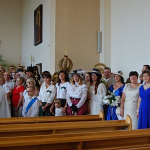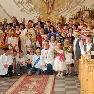 Rozpoczęło się tradycyjnie ? od mszy świętej w kościele p.w. Trójcy Świętej. Mieszkańcy dziękowali za zebrane plony. Wyrazem tych podziękowań były kunsztownie wyplecione wieńce, nad którymi pracowały niemal wszystkie sołectwa, a także pękate bochny chleba, wypieczone z tegorocznych zbóż. Po nabożeństwie barwny korowód przeszedł na parking, gdzie odbył się dożynkowy obrządek.