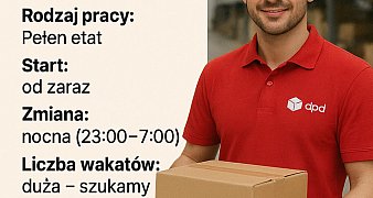 Promuj ogłoszenieSortowanie paczek na taśmie, załadowanie i rozładowanie kurierów Siedlce Zmiana nocna 23:00 - 7:00 możliwość nadgodzin Magazyn DPD, Umowa zlecenie Start możliwy od zaraz Praca ... czytaj więcej
