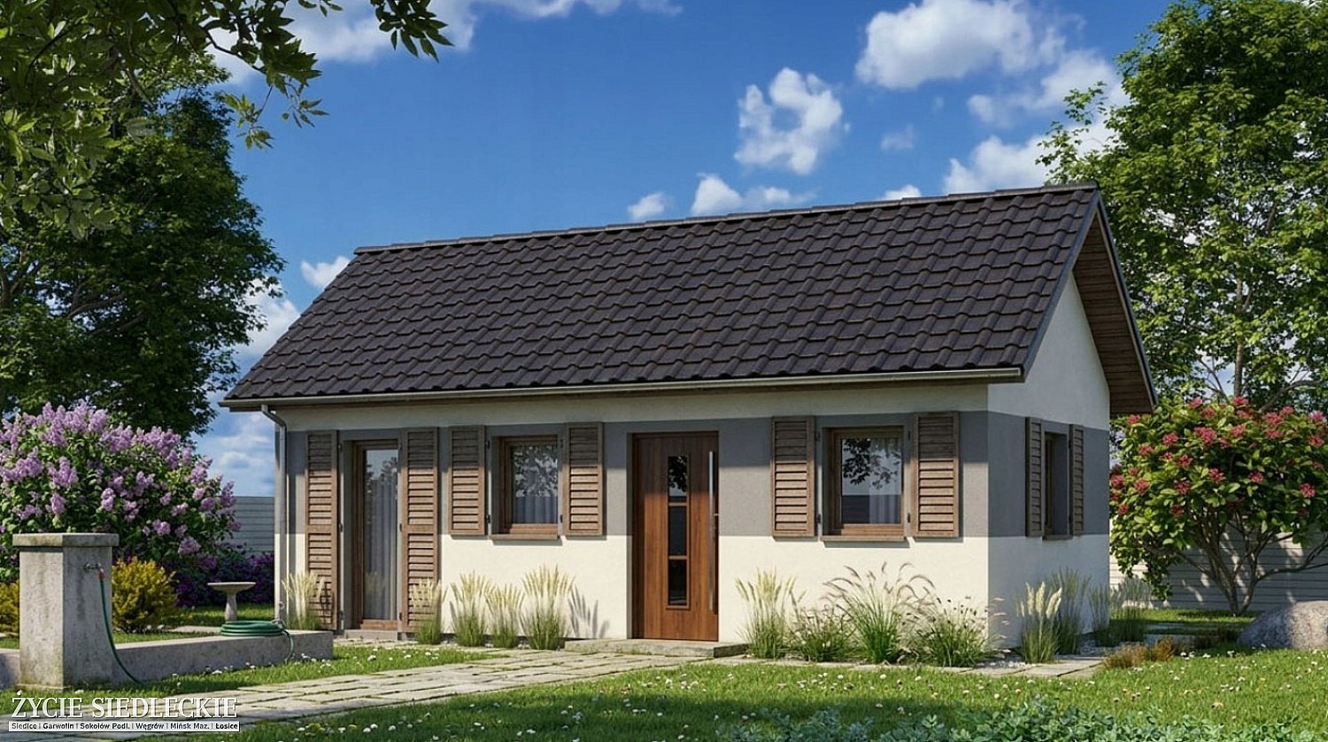 Domek wykonany jest z certyfikowanej konstrukcji szkieletowej, co przekłada się na jego trwałość i stabilność. Technologia ta zapewnia również bardzo dobre właściwości termoizolacyjne. Istnieje możliwość wykonania ocieplenia, dzięki czemu domek sprawdzi się zarówno jako letniskowy, jak i całoroczny.