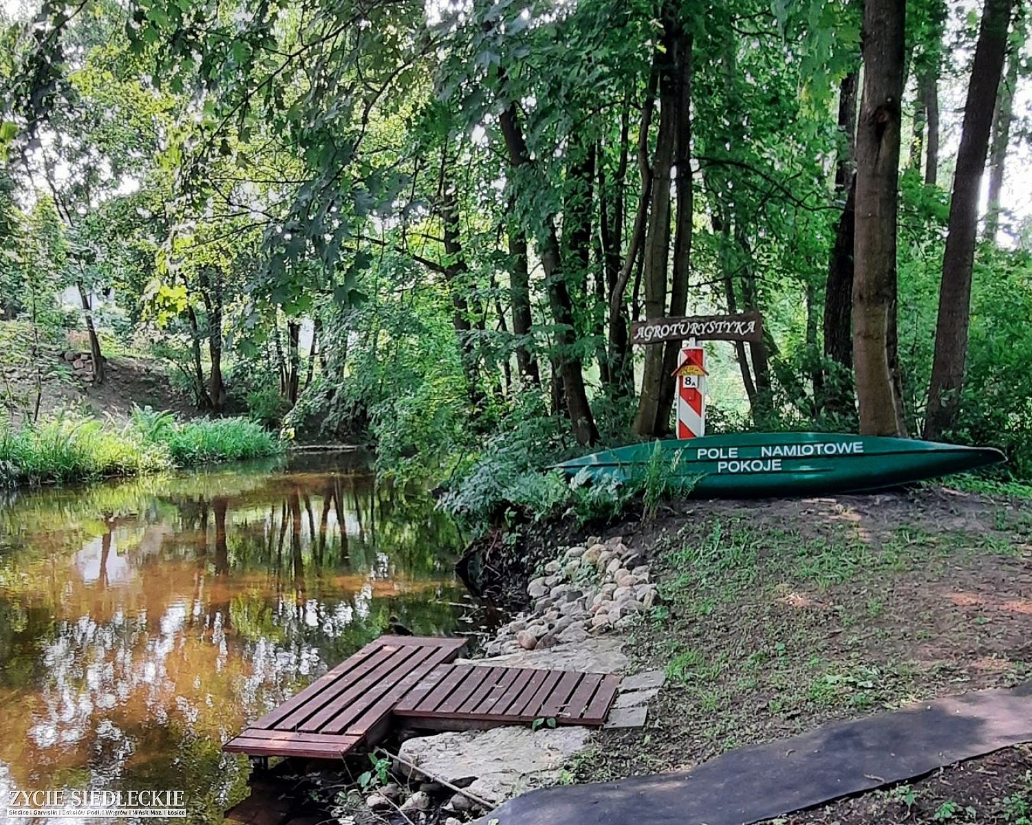 * POLE NAMIOTOWE w obszernym domowym ogrodzie z pełnym zapleczem sanitarnym /2xwc, cw, prysznic), kuchnią oraz wyposażonymi miejscami na ogniska/grilla * boisko trawiaste z bramkami do gry w piłkę nożną * noclegi w 3 pokojach gościnnych dla 6-8 osób * małą przystań wodną dla kajakarzy * SPŁYWY KAJAKOWE.