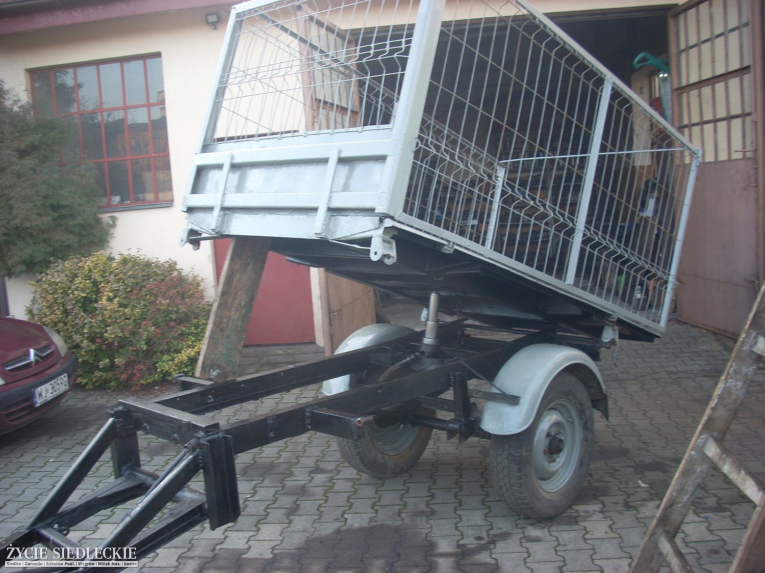 Przyczepa rolnicza wywrotka na 3 strony wymiary paki 230 x130 cm w bdb stanie do pracy w szklarni , sadzie , stajni -zastosowanie do mniejszego ciągnika